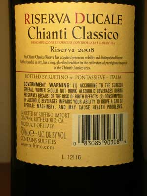 Ruffino Reserva Ducale Chianti Classico 2010.