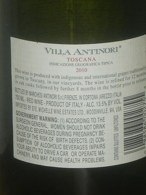 Villa Antinori Toscana 2010, is a great Italian chianti. It is so good with spaghetti you just can't go wrong.