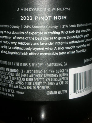 Date entered: May 21, 2024 J vineyards in Monterey County, Sonoma County, and Santa Barbara County Price a little higher than the $10-$12 variety, but a very nice trade off! Went back for seconds!