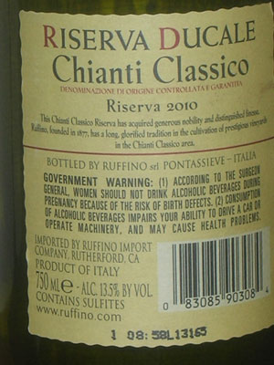Ruffino Reserva Ducale Chianti Classico 2010. a great Italian chianti!
