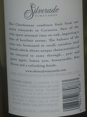 Silverado is a well established name in wine and the Chardonnay only compliments it's Cabs.
